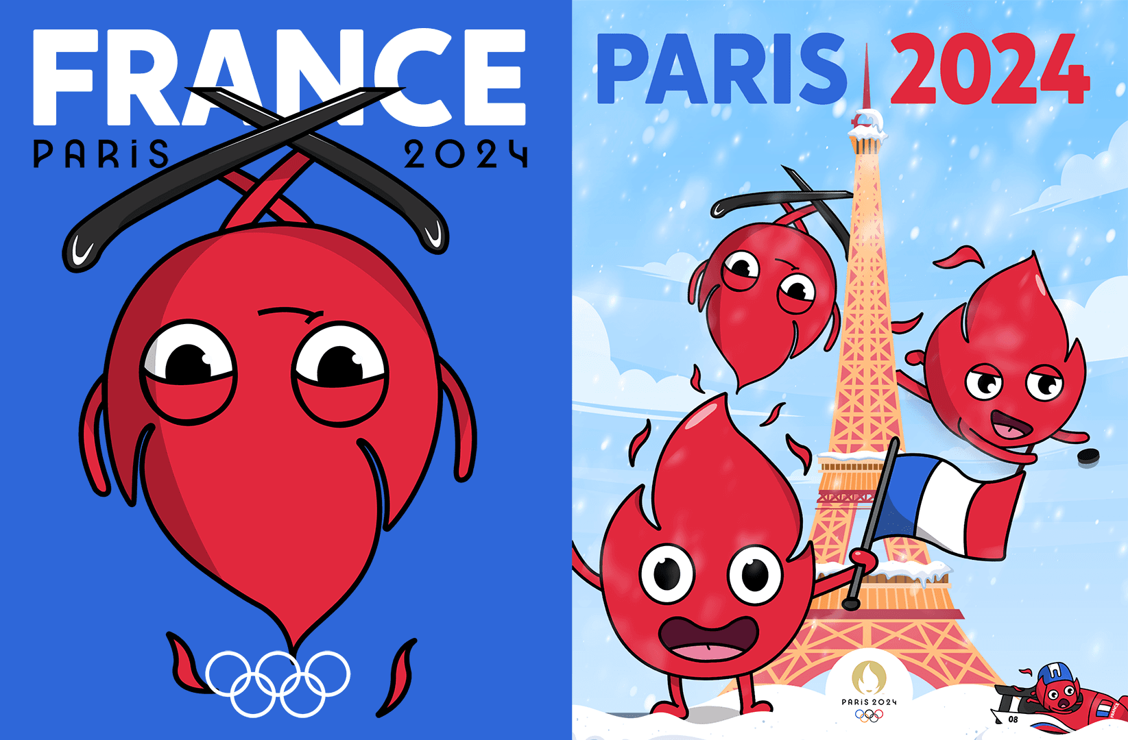 Création d'une mascotte fictive pour les JO d'hiver 2024 ainsi que d'un tot bag en Bento design.